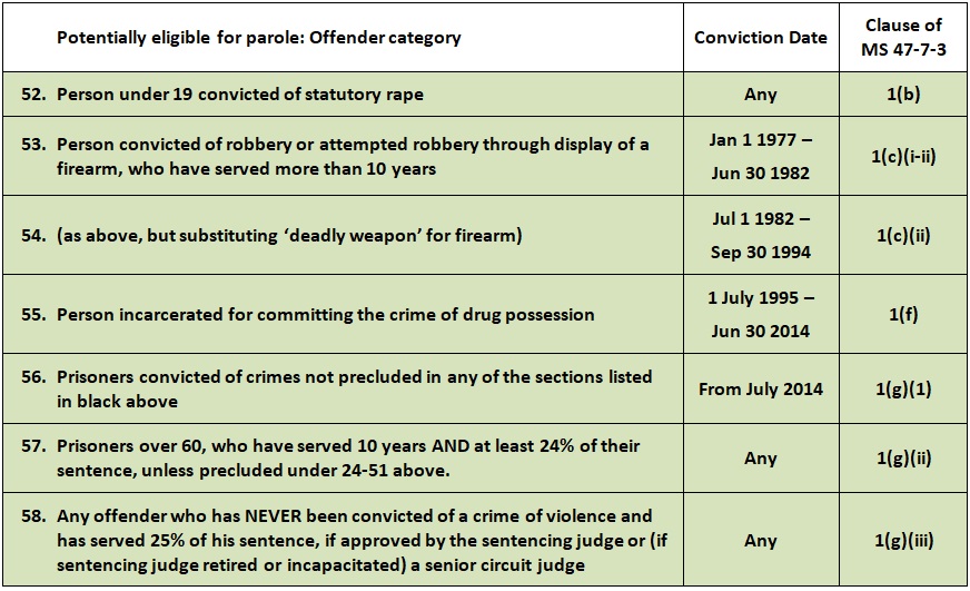 MS 47-7-3 is the key statute which determines who is and isn’t eligible to seek parole in Mississippi.